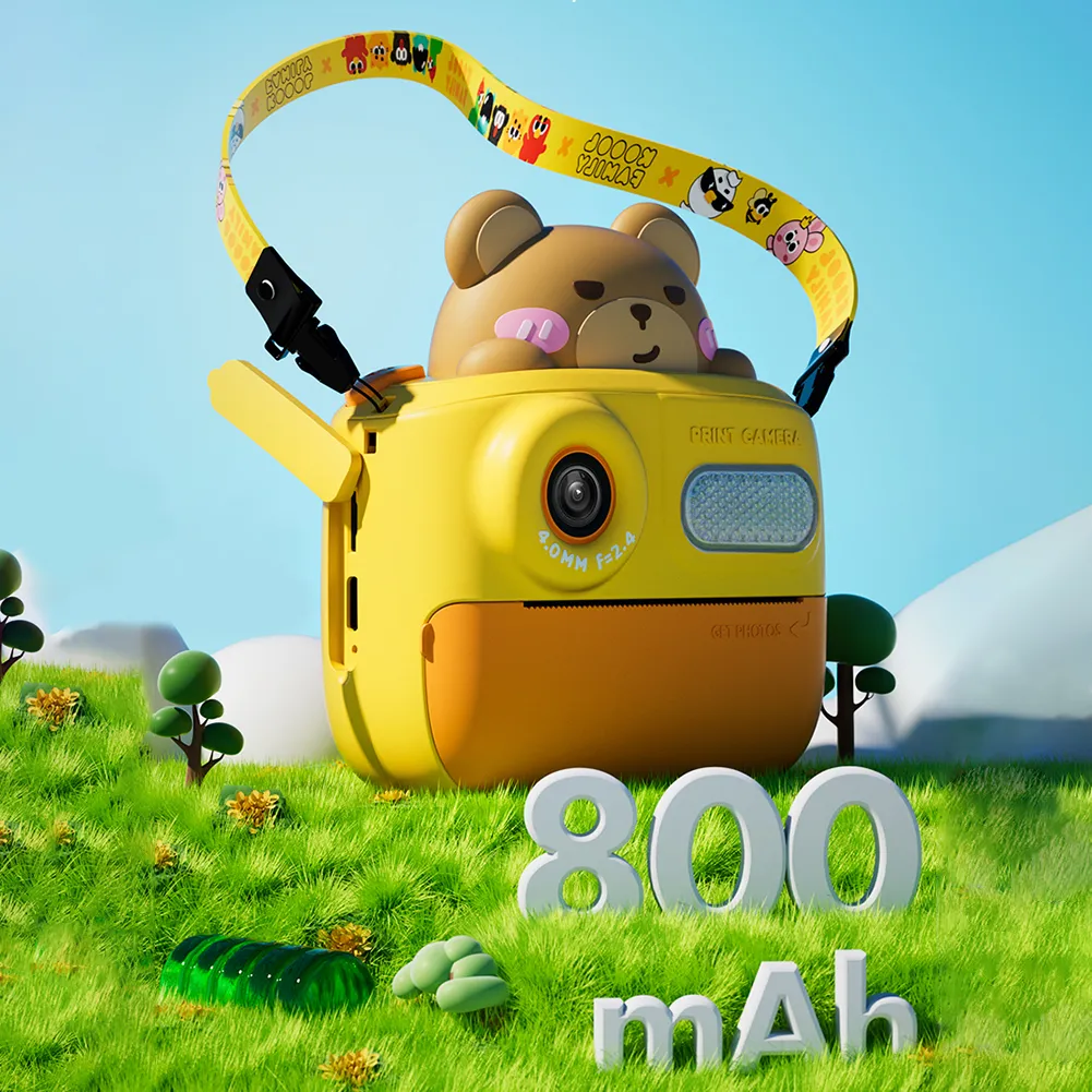 Cor: Urso Amarelo Funções: Fotografia, impressão, gravação de vídeo Tecnologia de impressão: Tecnologia de impressão térmica (sem necessidade de tinta) Efeito de impressão: imagem em preto e branco Capacidade da bateria: 800mAh Materiais: ABS + silicone + PC Tamanho do produto: 95,8*54,8*113,0mm Peso do produto: 209g Tamanho do pacote: 163*64*145mm Peso da embalagem: 230g