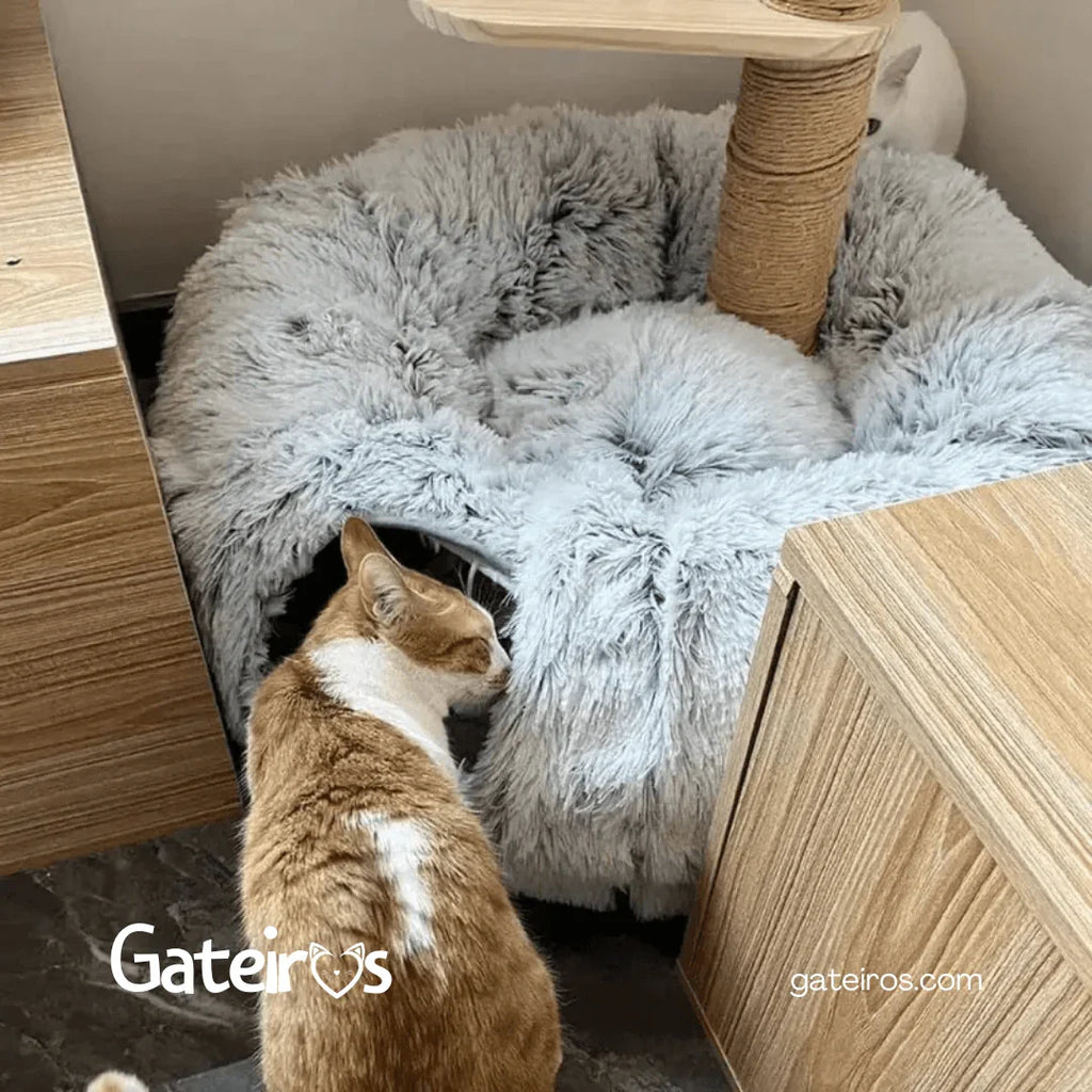Esta toca oferece o melhor dos dois mundos: um espaço para seu gato brincar e descansar com conforto e estilo. Adquira agora e transforme o dia a dia do seu felino!